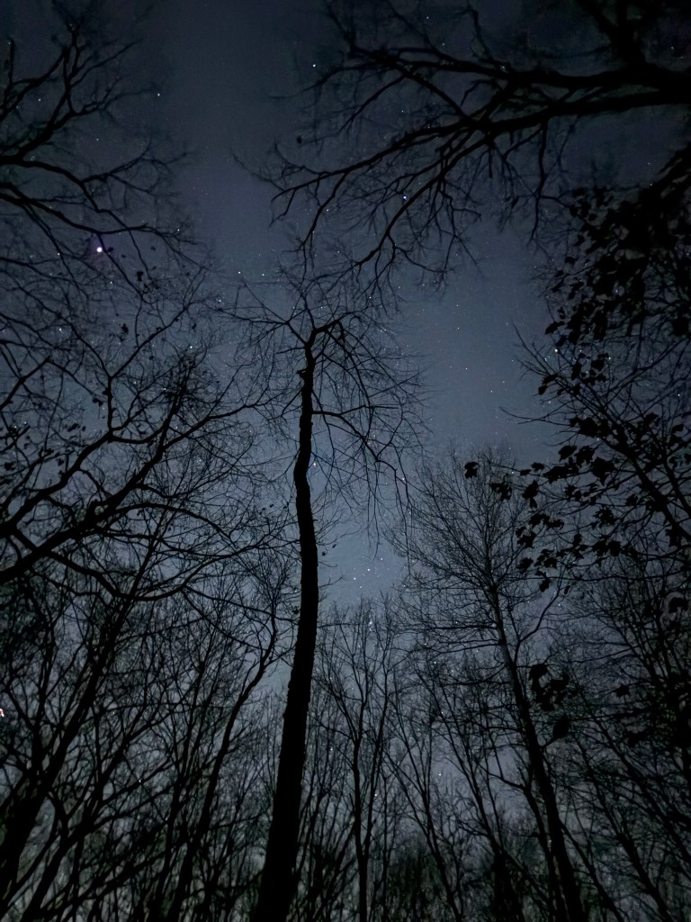 we’d reserved the latest time slot, thinking there might be less people on the trail that way. we needed quiet, to be surrounded by familiar trees – even in silhouette – the inky sky above, stars twinkling.