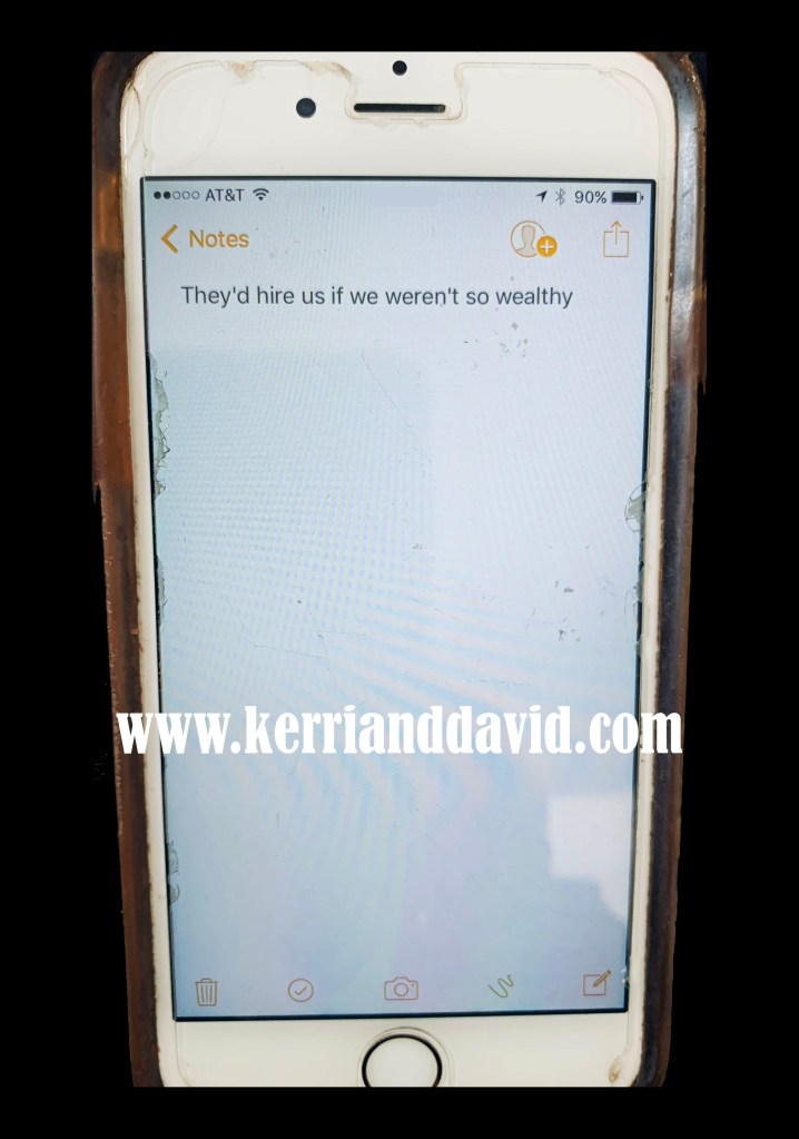 “they’d hire us if we weren’t so wealthy,” she transcribed.