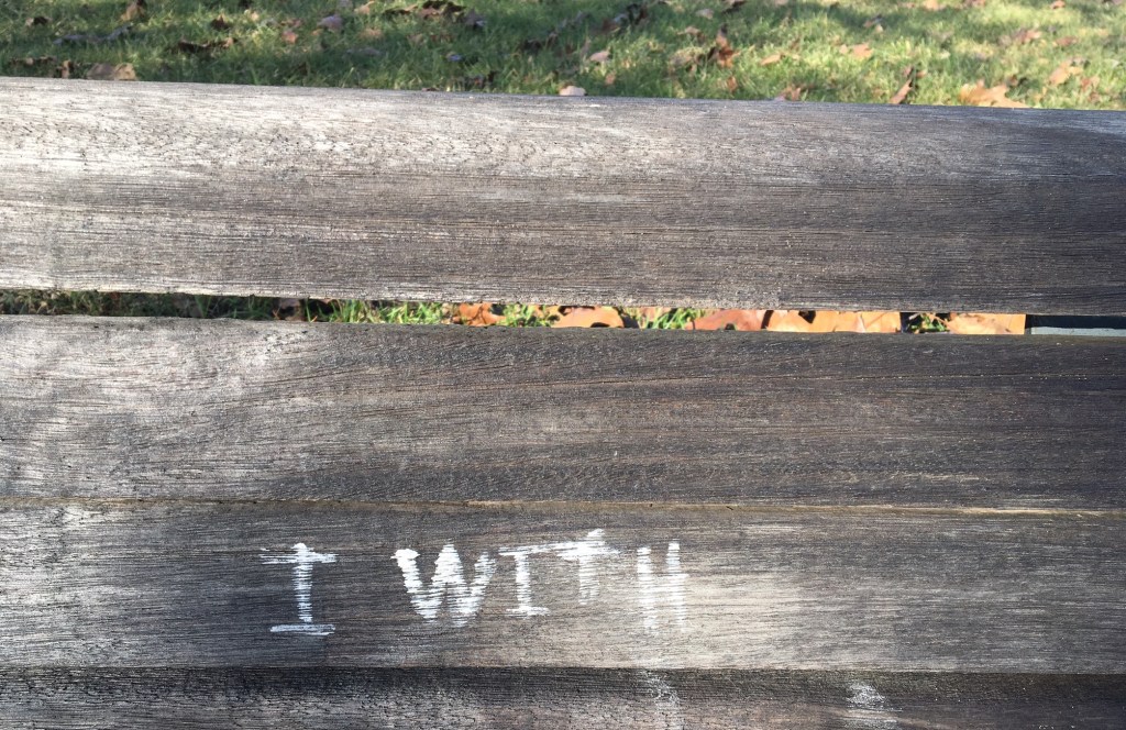 we passed the bench in the park. i couldn’t read the rest; it’s possible that the spraypaint was -somewhat- erased for a reason. nevertheless, what remained: i with.