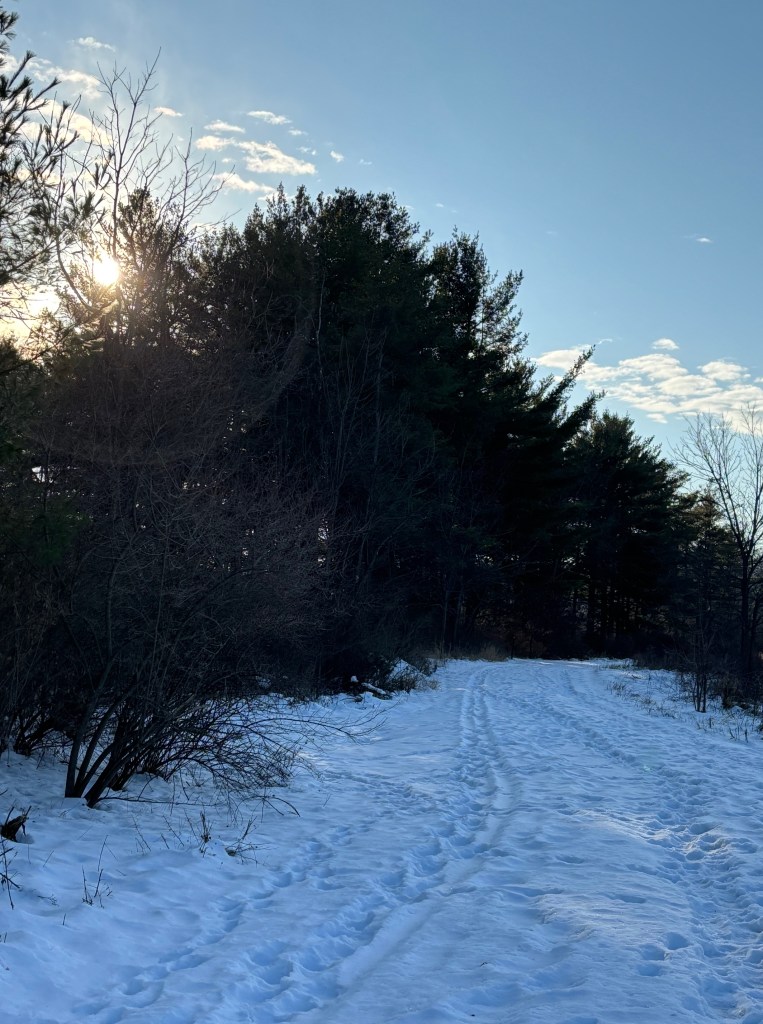 this is one of the bends in the trail i really love. as we come around this outer perimeter of the trail – a section beyond which we have explored with good boots and warm weather – i know that the stand of pines is coming. and with those pines, the scent…
