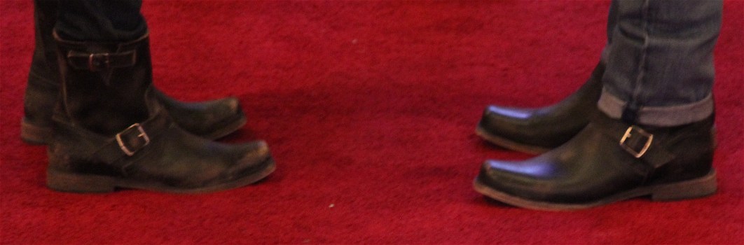 we went to the frye boot store in chicago long before our wedding day, combining a visit with The Boy with our errand. the girl-boots i tried on weren’t right…although i love all the high frye boots, we had a vision for these, the one item we each splurged on in our apparel for The Day. the boots needed to be totally dance-worthy, kind of worn-looking, lower-ankle boots. i ended up buying boy-boots; it helps when you have big feet, lol, because you can find boy-sizes that fit. we wore them inside the house dancing many times to break them in. but never put them on to go anywhere. we were saving them.