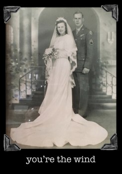 it would be 75 today. 75 years since the day my sweet momma and poppo married. and so, i am sharing two videos here today – the first is a dedication and the other is my song YOU’RE THE WIND. because i know you are. the wind. to each other and to each of us here on earth who miss and love you. always.