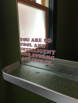 i walked into the restroom at the red cup, a sweet coffeehouse on washington island. on the mirror were these words: “you are so cool and intelligent and strong and fierce.” my face stared back at me, right next to these words. a reminder. stand up straight.
