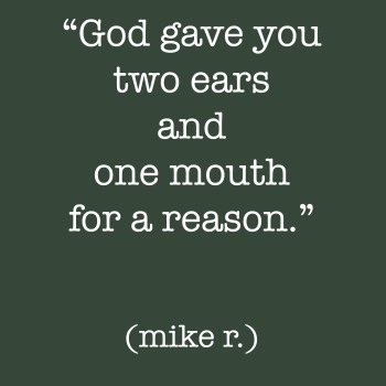 “God gave you two ears and one mouth for a reason,” mike said. in heaven, my sweet momma was nodding, a smile on her face.