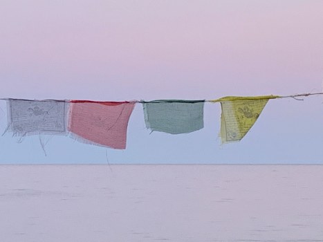 the lake breeze is stronger than the breezes in our backyard; sometimes the flags are horizontal in its fury. the threads are loosening, loosening; the prayers are flying, flying. these little prayer flags are already more quickly tattered than the ones we have at our home. prayers for peace, compassion, strength and wisdom are perhaps more zealous these days, perhaps more often, perhaps more imploring.