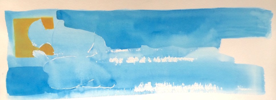 of all his watercolors, i remember this one. maybe it’s universe-timing but the image of a person kneeling silently in reflection, in prayer, fading into the blue of eternal sky and the hinted suggestion of sun seems particularly synchronistic. the fluidity of line, the brushstroke revealing the image of humanity – in a transitory time here as part of the whole. a blurry-edged fleeting existence in all of time’s galaxy.