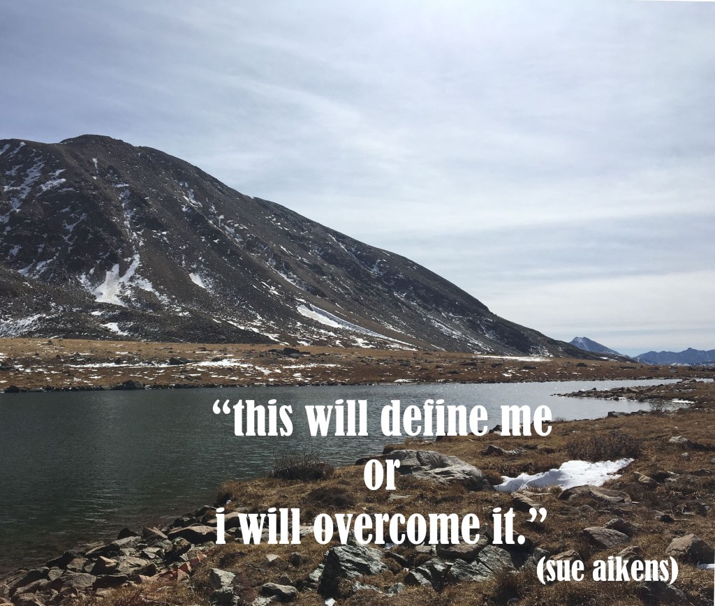 nevertheless, i remember the words of sue aikens, “this will define me or i will overcome it,” and i, horse or no horse, take the reins in the middle of no-mercy and firmly hold them in my hands.