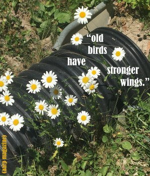 but we are aging birds with wings who have felt the sun of more than twenty-thousand mornings, the moon’s gravitational pull of decades, the grace of time and gardens through fallow and fruit. we are aging birds who have both soared and plummeted. we are aging birds who do not need the measure of others for our definition, for defining ourselves, continuing to learn, takes enough time and is complex enough.