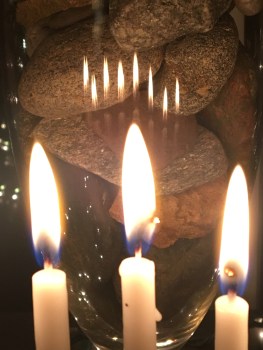 we settled into the ritual with ease. sundown came and we gently removed the tiny wax bits that were left in the menorah. we drew new candles out of the box, placed them in their spots, sparked the shamash, lit each day’s wick, reciting either the words we had researched or blessings we spoke into the universe. when the last night came, as we watched the flames dance in glassware on the table and in the window, we sang. we made up the song and intended it as words of gratitude and a wish for light in all. it has become a new tradition we will continue…there cannot be any reason to not add rituals into the darkness.