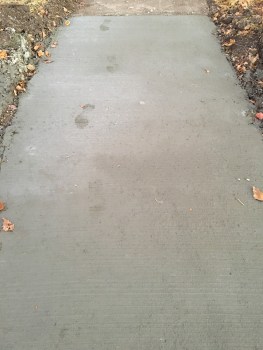 so someone went around our rickety old adirondack chairs with the signs that said “sidewalk closed” in order to walk across the newly-poured sidewalk. clearly, this person wants to be remembered. judging by the print, this person is male, relatively long-legged, dons footwear sans brand markings on the sole and leans a bit heavier on his right foot than his left. since that is not much to go on, there is not much to be remembered. just that he wanted to make some sort of statement that day and marched right around the barriers and right through our new cement.