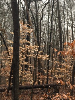 even on a foggy, overcast day, looking down from the ridge the glow was unmistakable. the everciduous beech trees stubbornly held their leaves, dying the brown woods a shade of cantaloupe or hard-to-identify pantone.