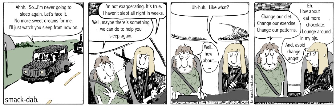 so, while changing diet and exercise and patterns all seem like spiffy-doo-dah ideas, when one wants a little sympathy, one does not want spiffy-doo-dah suggestions. just sayin’.
