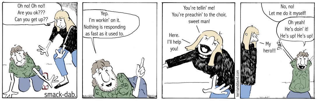 the heroics of getting yourself up should not be downplayed. nor should it be underestimated. it’s surprising when it suddenly takes a little longer, with a few more groans and creaks.