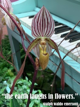 i stood there staring at him, laughing. he was sitting in front of an old piano painted in bluebird-sky-blue-peely-paint and he winked at me. all the other orchids didn’t have to do anything to get our attention, and, truthfully, neither did he – they were all stunning and refreshing hopeful harbingers of maybe-spring-will-come – but he tried extra hard anyway.