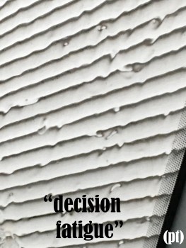 decision fatigue has delayed a new bathroom faucet, the possibility of new kitchen counters, whether the fireplace should stay wood-burning or gas logs or insert and…and…and, most definitely, new hiking boots.