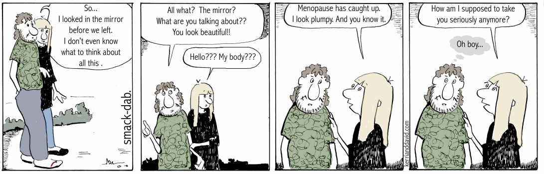 so while i want him to understand – to really get it – to grok it at a cellular level – to feeeeeel my pain, he is thinking, “she’s beautiful” and tells me so. ohmyheavens, seriously? can he not share in my astonishment, couple with my what-do-i-do-now-ness, sympathize in a big-big way, help me pick out jeans in the next size?