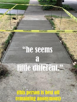 it begs the question: does this mean that the sidewalk won’t be done because “he seems a little different”??