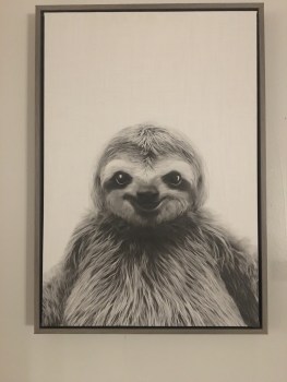 this darling face was larger than life, a giant print by simon te tai hanging on the wall at our airbnb in charlotte. many times we would find ourselves standing in front of it. it compelled you to do so. is there a “hug-a-sloth” day? we both would like to participate.