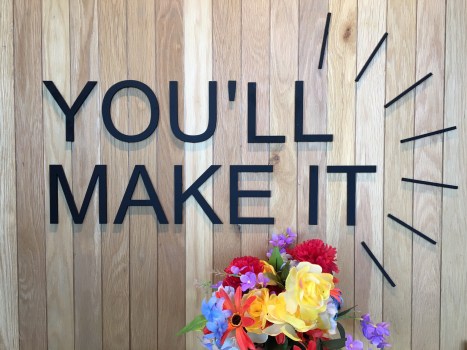 over d’s head on the opposite wall the words “you’ll make it” got my attention. i was hoping it wasn’t the universe simply placating me. i was thinking more of digging out the colorful magnetic plastic letters circa 1995 and pulling out d-a-m-m-i-t for the fridge. but i guess i will have to choose to believe otherwise, leaning on both polly and anna.
