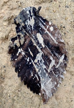 and nature studied jackson and drip-technique-painted the leaf on the trail. strategically placing small muddy potholes, it invited hikers and dogs and horses to step in. just as strategically, it placed the leaf nearby, deep brown in leftover autumn paint. soon, creamy splotches and drips and spatterings pollocked the leaf, ever-changed. i couldn’t help but notice as we walked. i felt some slight validation for the paint-spattered-paintings on our walls, the ones where i stood back and threw paint and threw paint and threw paint until i knew it was done.