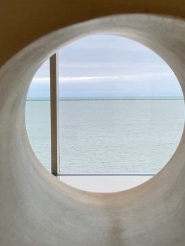 the porthole i found in the milwaukee art museum – through one of barbara hepworth’s sculptural pieces – had the same impact on me. bending down, i focused only on what i could see through that porthole. on a different day, at a different time of day, in a different month or season, never static. even minutes from my peeking-through, the wind picked up and the lake’s surface roiled a bit and all from before was erased.