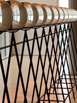 this installation was beautiful. stunning. olafur eliasson’s rainbow bridge was in a room full of light and the spectrum of color was immediately striking. and then, we walked into the room further and all the color disappeared, instead spheres of glass reflected the windows and the water outside the museum. “the appearance of the spheres is unstable, slipping between clarity, colour, and blackness in response to the slightest movement of the viewer.” (olafur) if you stand right in front of one of the twelve spheres, you can see your reflection upside down, teasing you to make faces and play. we could have visited with this piece all day – moving around the room, standing still, watching the light waltz and dip as the hours wore on.