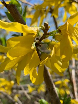 except for maybe the voice of my beloved daughter on the phone. she is forsythia for me. for just moments or for an extended conversation or – if i am fortunate – in person together, the sound of her voice, her zeal, is Home.