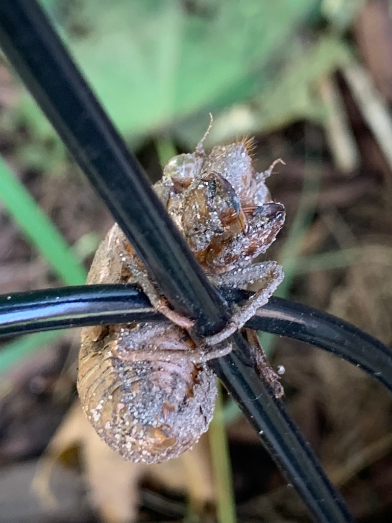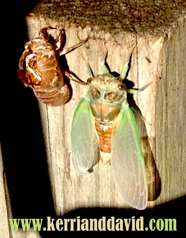 and then, it wakes soon after, having pushed its way through the deadened shell. with wings. wings! exuberant noise fills the summer air. i know i will listen for our garden-fence-cicada on hot nights when the sun is setting and dusk is on the sky.