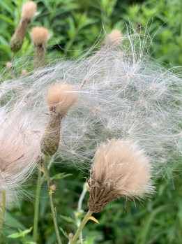from a distance they are paintbrushes, sporadically appearing in the meadow, catching plumes of downy fluff that spread like thick contrails, and, catching the wind, fly off. i can imagine plucking one of these paintbrushes, dipping it in paint, touching it to canvas, light strokes of color.