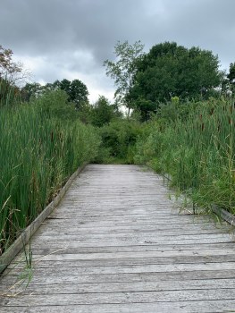 so, i go slow across the expanse over the marsh. i take my time, drinking in the tall cattails on either side. the warm humid air partners with the distinct sound of this wooden walkway and gets stored in my brain.