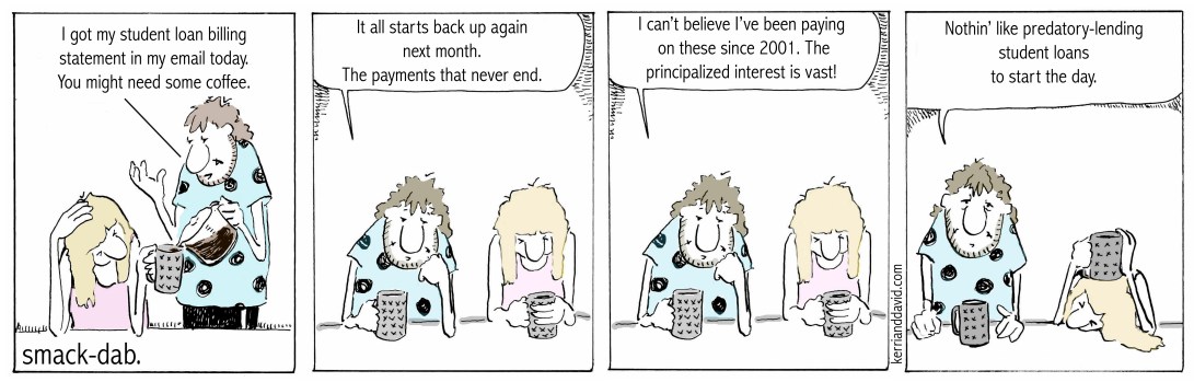 this isn’t a funny SMACK-DAB. it’s not touching or poignant. but it is real. it is reality for millions of people victimized by dysfunctional practices – student loan malpractice – the government should have overseen.