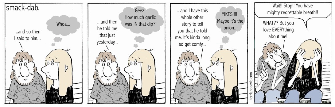 well, some things – in relationship and diet and everynowandthen-halitosis – must be taken with a grain of salt, i guess – or maybe a little distance – or maybe a face mask.