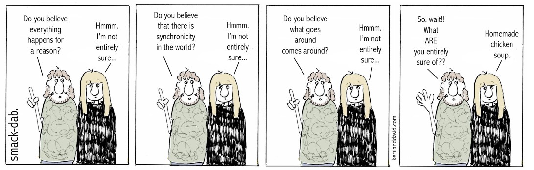 though we take turns with the existential questions of life, he is the one who asks most of the ones – aloud – that are -sometimes annoyingly – foggy. the kinds of questions that require lengthy, long-winded, circular, pondering dissertations, steeped-in-wisdom-devoid-of-wisdom yada-yada, first-person-experience tales, prolonged dialogue, yin-yanging polar opinions, all the reddiwip of solid answers.