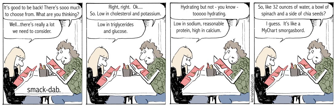 but – just as it isn’t smart to go to the grocery store hungry, it also isn’t smart to go out for dinner the day after your metabolic and lipid panel bloodwork results are posted on your mychart.