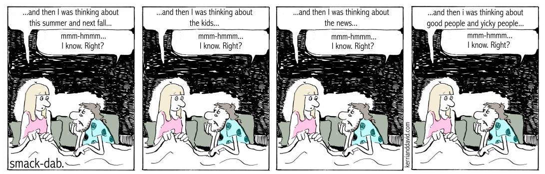 and sometimes, it is less deep, less intense, less – well – anything at all. just random. and one of us – i’m not admitting to being the one – goes on and on, pondering, pondering, pondering – all aloud – convinced the other one of us – again, no pointed fingers here – is actually listening.