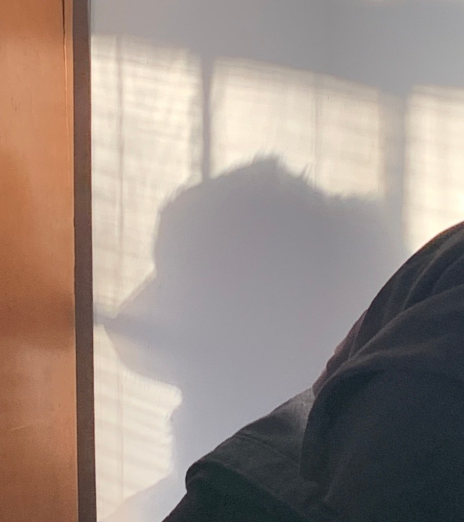 his shadow on the wall has kept us company – each morning – with the east sun streaming in through the window – reflecting his perch on our bed, the furry top of his head tousled by many good-morning pets.