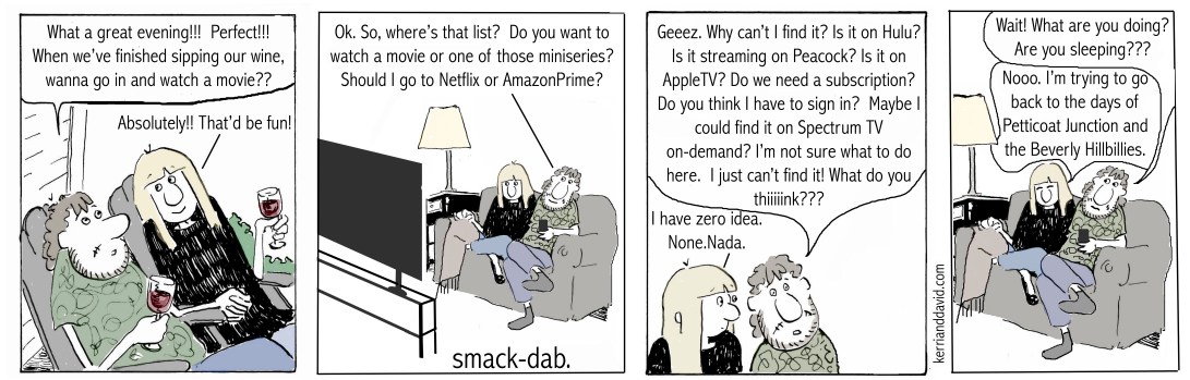 i pined for the days of the tv across the room, connected to the antenna on your roof, maybe with a set of bunny ears on the tv stand to help. those days when you simply walked over, turned the dial and the tv came on. then you’d turn the other dial and three major stations would show up. and you’d pick from the shows on those channels, maybe looking up in the daily newspaper (laying next to the couch) for a description of the show or – if you were in-the-money – look it up in tv guide. then you’d settle in for a fine time with the folks in petticoat junction or with granny and jed and elly may and jethro in beverly hills. or maybe gidget or hogan or all in the family or three’s company or mash or happy days or mork and mindy or laverne and shirley or…. the list is endless. but it was all simple. walk to tv. turn on. turn channel dial. turn volume dial. walk back. sit down.