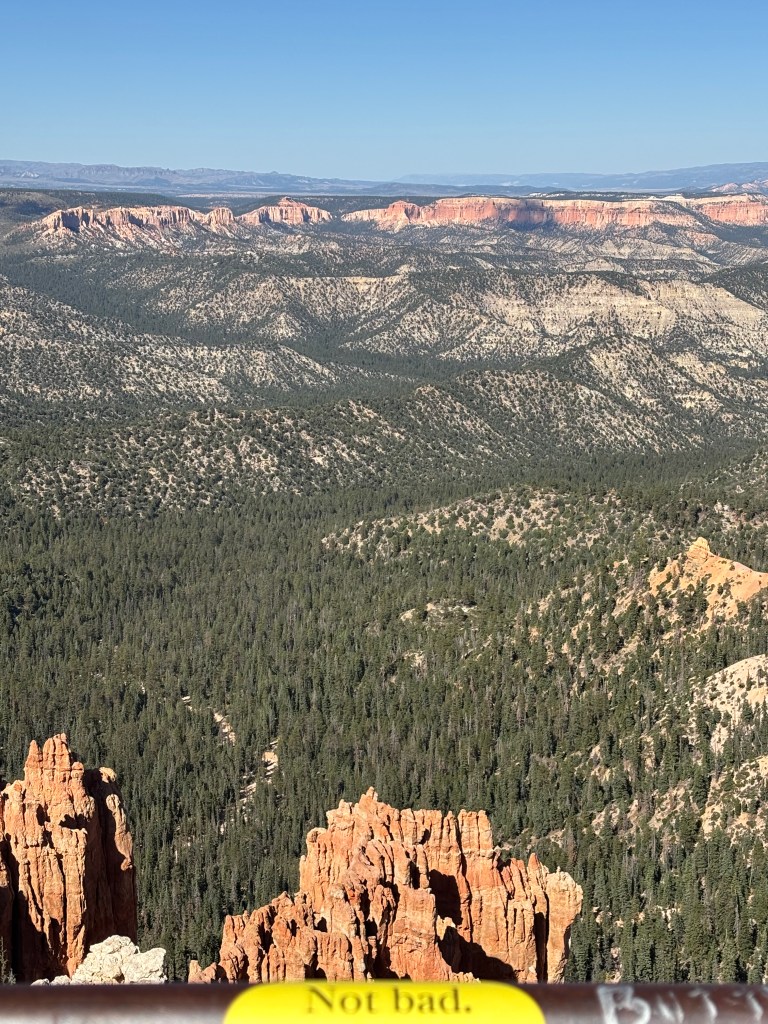 in an understatement of understatements, the words “not bad” on the sticker on the railing at this bryce canyon overlook made me laugh aloud.