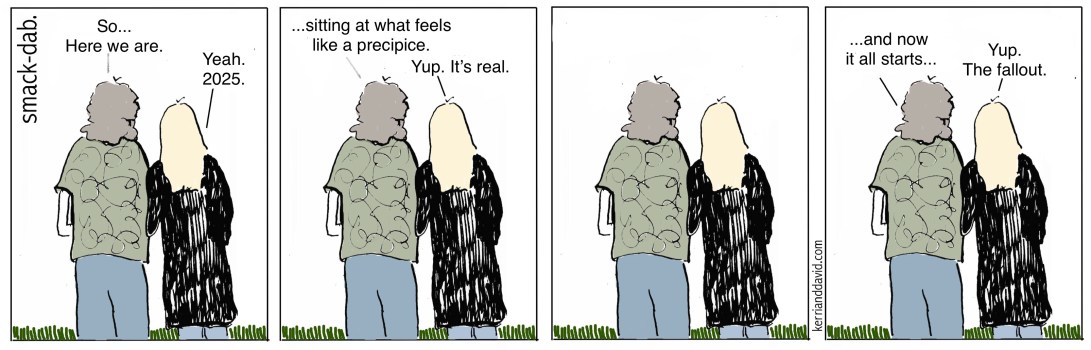 i have already felt it. i fell over it on new year’s day. i realized that this thing that is coming now – in 2025 – this new administration’s cruelty and revenge, the emphasized attitudes disenfranchising people, the new way of being in this country, the gloating extremist, isolationist stance this country will take in this world – is already taking a toll. the precipice is real.