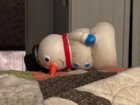dogga has two favorite toys. one is candy cane and the other is snowman. we purchased both of them in december 2017 at festival grocery store – in a bin in the front of the store – each for $1. they are both squeaky toys. and they both still squeak.