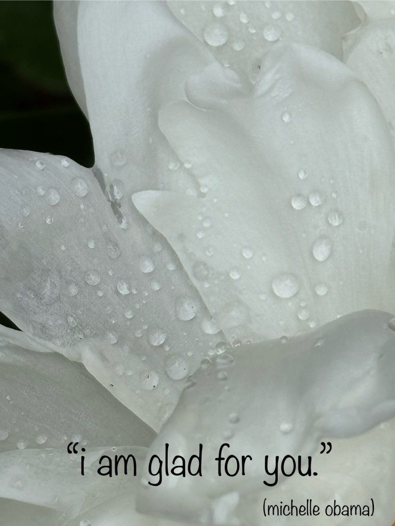 “i see you. you are beautiful. i am glad for you. i am glad you are here.” (michelle obama)