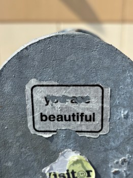 below the sticker that reads “you are beautiful” is another sticker. this one says “visitor” with a smiley face as the “o”. sheesh. i nod. i soooo feel like a visitor to this place. particularly right now. and i’m not talking about this grocery store. everything that is happening is hard to understand, to grok, to even slightly wrap my head around.