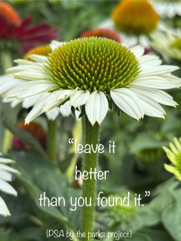 it was in the most basic of childhood lessons i learned to clean up after myself. i learned not to be wasteful or disrespectful to the environment. i learned to be mindful of good practices of ecology, of thrifty reuse, of repurposing, recycling, of proper disposal. my sweet momma always taught me the importance of leaving a place better than i found it, a lesson of stewardship with a quote commonly attributed to robert baden-powell (of mount baden-powell fame), the founder of the scouting movement.