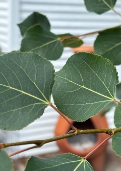 because it has been an extraordinarily hot summer, i have watered breck consistently. last year the heat took a toll on breck and you could see it on stressed leaves so – between that and watching martijn watering his young trees on the youtube of his idyllic life in the mountains of italy – i decided it would be best to tend it more. breck has responded with glorious growth, rich verdant leafing, a bark that is appearing more white, quaking in every breeze, soaking up the attention.