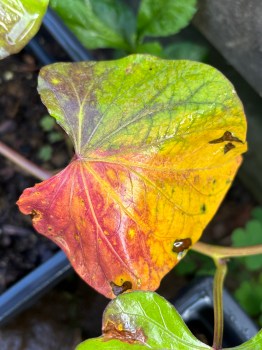 the sweet potato plant is answering the call to fall. it keeps on growing, sending new shoots, vining out. it also is starting to change color. its rainbow hues draw our attention. our sweetly-screaming woke sweet potato.