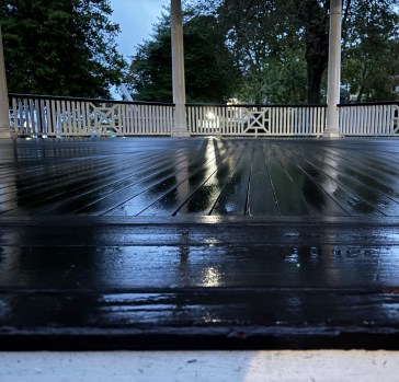 for here we were – both literally drenched – all alone on the gazebo of my youth – lifting the cellophane of the old magic slate – starting a new history.