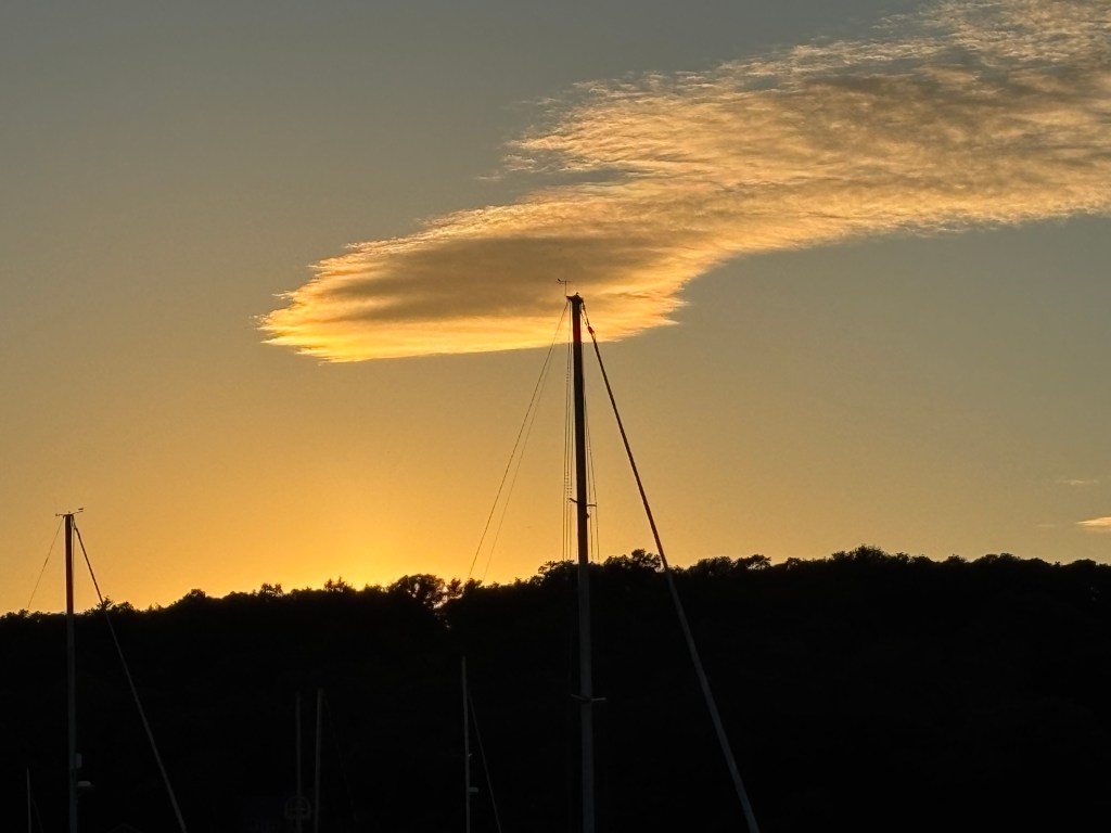 the sunsets over the harbor are stunning. the inky nights on the dock are magical. i took them with me as we left, this time slowly, not fleeing.