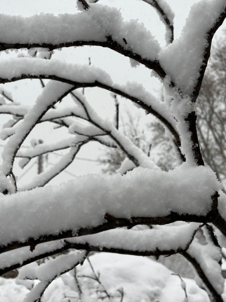 we missed the branch as soon as we removed it from the living room. it had been there for four years – ever since the water main in our yard burst and the ultra-supersized equipment brought in knocked this big branch off our beloved tree. we pulled it aside and then brought it in, putting it in a big clay pot and right next to the front window, bedazzled with happy lights and in a place of honor.