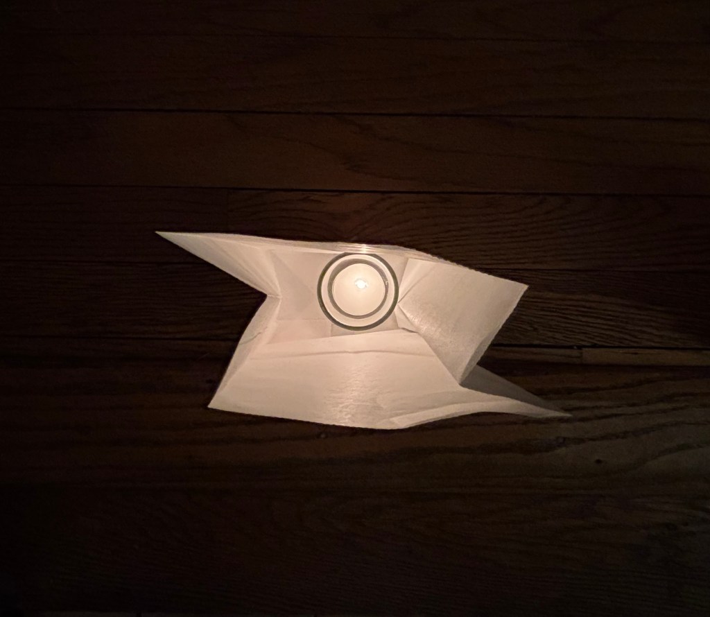 since then our luminaria have been set up in our backyard, small groups of dear ones or just us watching them glow into the night.