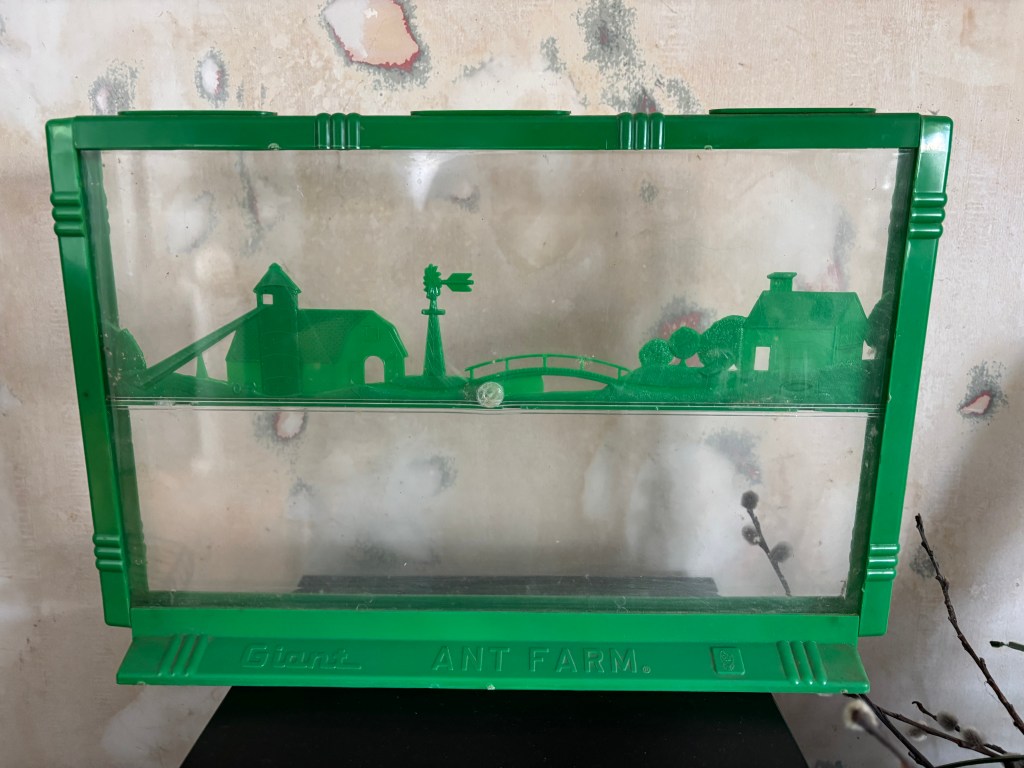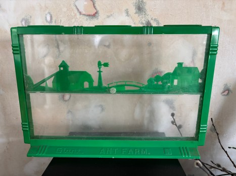 when i came across the green plastic ant farm stashed on a shelf in the storage room in the basement – between two stacks of books – just innocently sitting there – i couldn’t help but immediately feel like it could be a metaphor to how this universe – in the biggest sense of the word – is now looking at us.